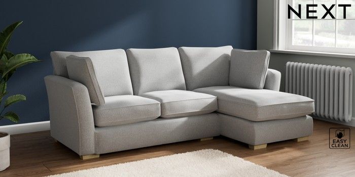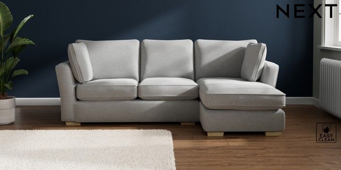 7.2.10 Heath Highback Medium Sofa Chaise - Right Hand Tweedy Blend Easy Clean Light Silver Grey Block - Light | Made Click here to use our website with more accessibility support, for example screen readers