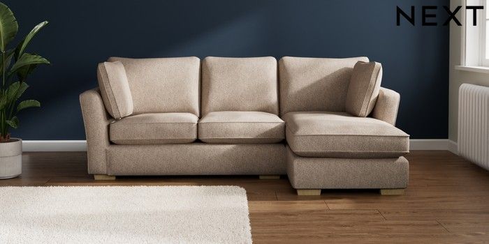 7.2.10 Heath Highback Medium Sofa Chaise - Right Hand Tweedy Chenille Mid Natural Block - Light | Made Click here to use our website with more accessibility support, for example screen readers
