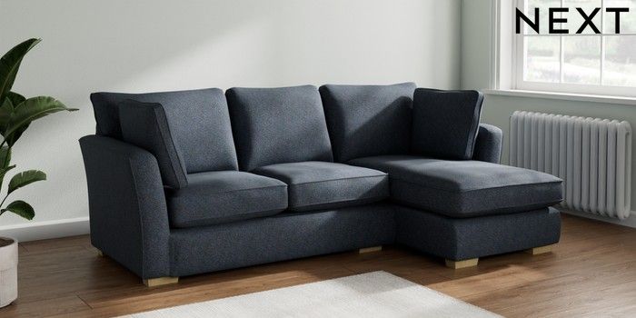 7.2.10 Heath Highback Medium Sofa Chaise - Right Hand Tweedy Chenille Navy Blue Block - Light | Made Click here to use our website with more accessibility support, for example screen readers