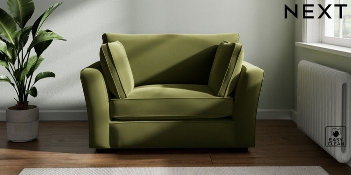 7.2.10 Heath Highback Snuggle Plush Velvet Easy Clean Mid Olive Green Block - Dark | Made Click here to use our website with more accessibility support, for example screen readers