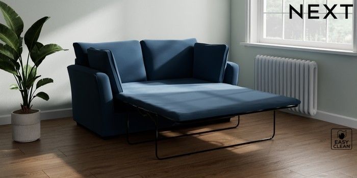 7.2.10 Heath Highback Sofa Bed Plush Velvet Easy Clean Airforce Blue Block - Dark | Made Click here to use our website with more accessibility support, for example screen readers