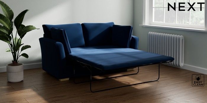 7.2.10 Heath Highback Sofa Bed Plush Velvet Easy Clean Navy Blue Block - Light | Made Click here to use our website with more accessibility support, for example screen readers