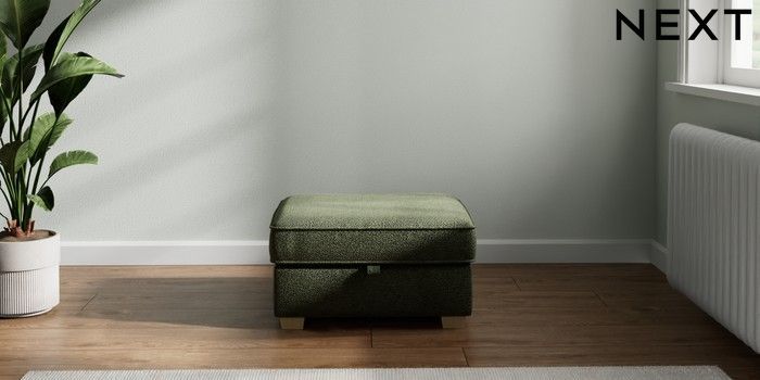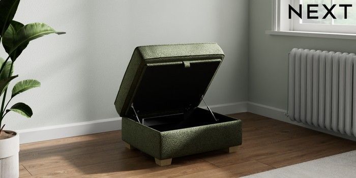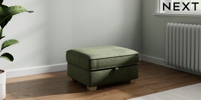 7.2.10 Heath Highback Storage Footstool Boucle Chenille Dark Moss Green Small Block - Light | Made Click here to use our website with more accessibility support, for example screen readers