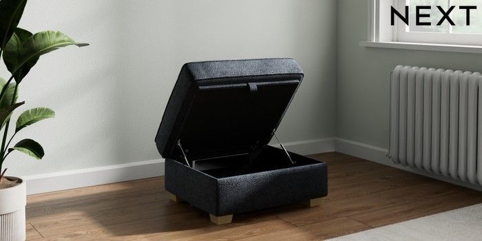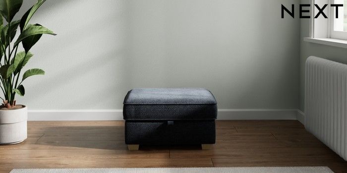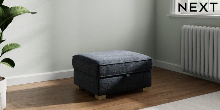 7.2.10 Heath Highback Storage Footstool Boucle Chenille Dark Slate Blue Small Block - Light | Made Click here to use our website with more accessibility support, for example screen readers