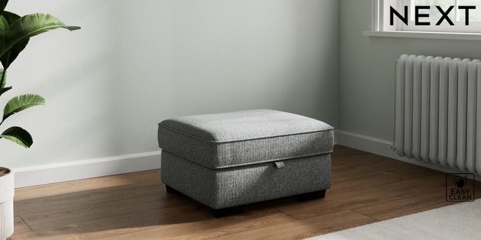 7.2.10 Heath Highback Storage Footstool Chunky Boucle Easy Clean Mid Grey Small Block - Dark | Made Click here to use our website with more accessibility support, for example screen readers