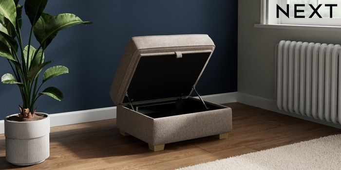 7.2.10 Heath Highback Storage Footstool Chunky Chenille Light Dove Small Block - Light | Made Click here to use our website with more accessibility support, for example screen readers