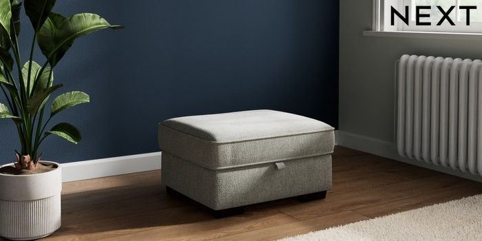 7.2.10 Heath Highback Storage Footstool Chunky Chenille Light Grey Small Block - Dark | Made Click here to use our website with more accessibility support, for example screen readers