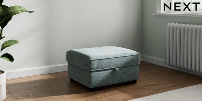 7.2.10 Heath Highback Storage Footstool Chunky Chenille Light Teal Green Small Block - Dark | Made Click here to use our website with more accessibility support, for example screen readers