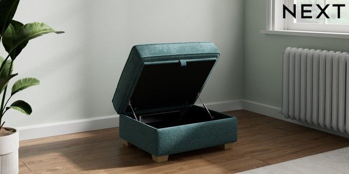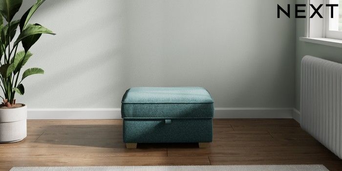 7.2.10 Heath Highback Storage Footstool Chunky Chenille Mid Teal Green Small Block - Light | Made Click here to use our website with more accessibility support, for example screen readers