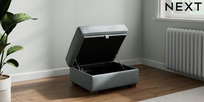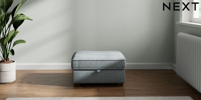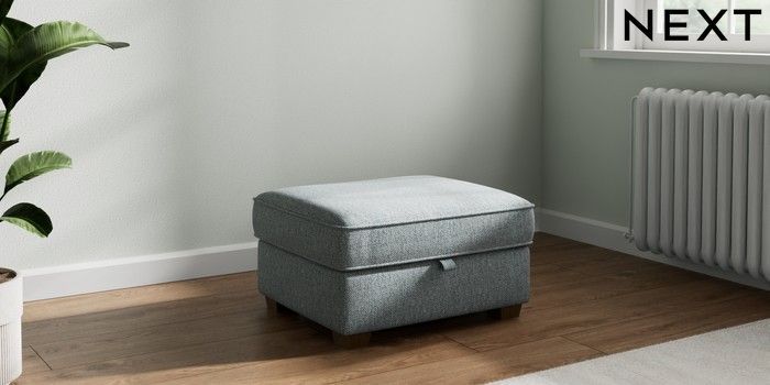 7.2.10 Heath Highback Storage Footstool Chunky Weave Mid Blue Small Block - Mid | Made Click here to use our website with more accessibility support, for example screen readers