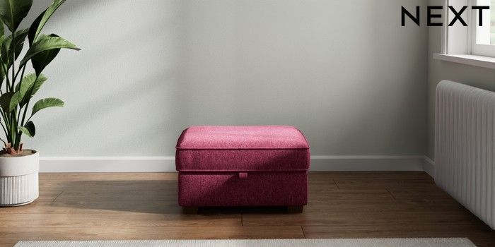 7.2.10 Heath Highback Storage Footstool Cotswold Chenille Dark Raspberry Pink Small Block - Mid | Made Click here to use our website with more accessibility support, for example screen readers