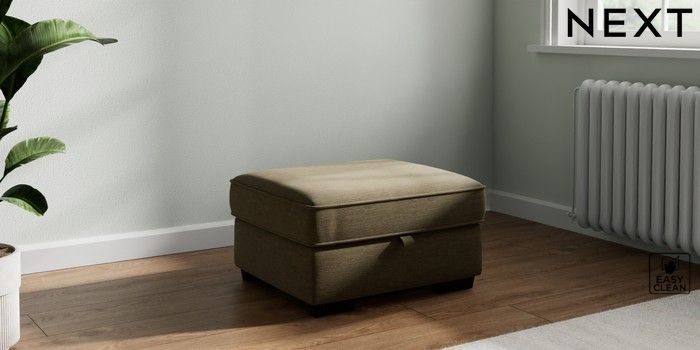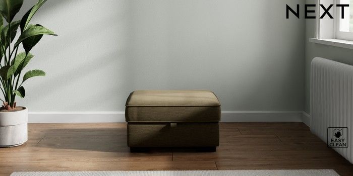 7.2.10 Heath Highback Storage Footstool Fine Chenille Easy Clean Dark Moss Green Small Block - Dark | Made Click here to use our website with more accessibility support, for example screen readers