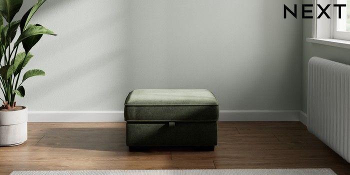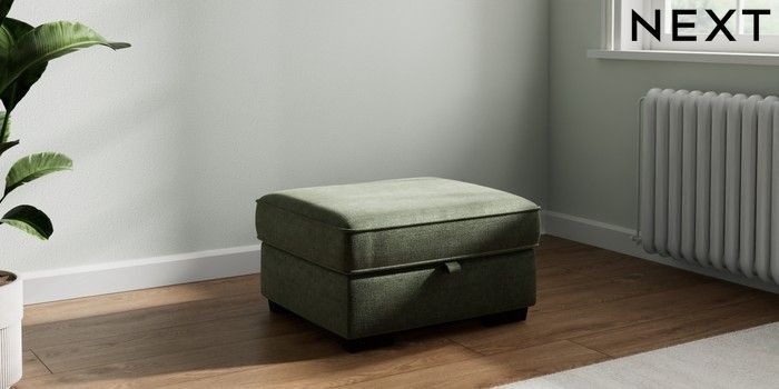7.2.10 Heath Highback Storage Footstool Luxe Chenille Mid Green Small Block - Dark | Made Click here to use our website with more accessibility support, for example screen readers