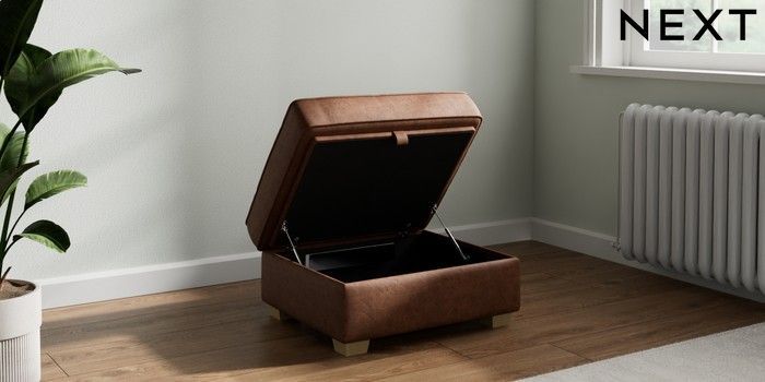 7.2.10 Heath Highback Storage Footstool Monza Faux Leather Easy Clean Chestnut Brown Small Block - Light | Made Click here to use our website with more accessibility support, for example screen readers