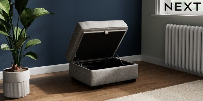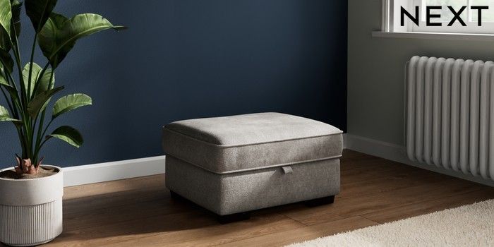 7.2.10 Heath Highback Storage Footstool Plush Chenille Light Grey Small Block - Dark | Made Click here to use our website with more accessibility support, for example screen readers