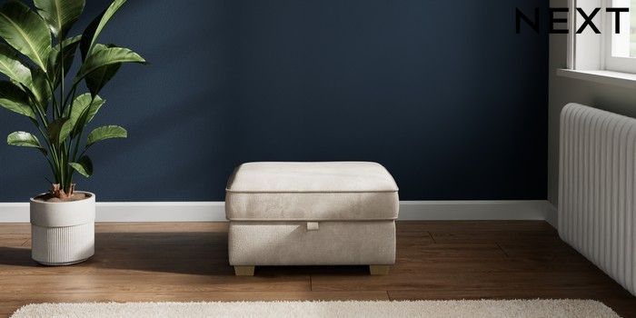 7.2.10 Heath Highback Storage Footstool Plush Chenille Oyster Small Block - Light | Made Click here to use our website with more accessibility support, for example screen readers