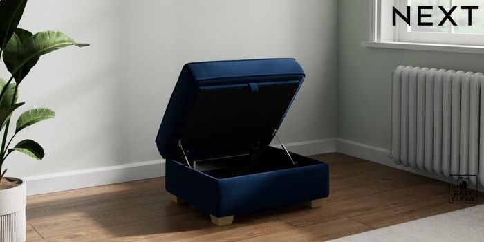 7.2.10 Heath Highback Storage Footstool Plush Velvet Easy Clean Navy Blue Small Block - Light | Made Click here to use our website with more accessibility support, for example screen readers