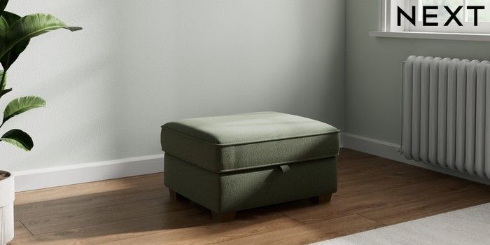 7.2.10 Heath Highback Storage Footstool Relaxed Linen Look Dark Green Small Block - Mid | Made Click here to use our website with more accessibility support, for example screen readers