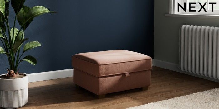 7.2.10 Heath Highback Storage Footstool Relaxed Linen Look Light Rust Brown Small Block - Mid | Made Click here to use our website with more accessibility support, for example screen readers