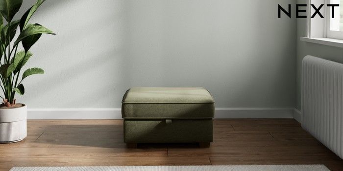 7.2.10 Heath Highback Storage Footstool Ripple Chenille Mid Moss Green Small Block - Mid | Made Click here to use our website with more accessibility support, for example screen readers