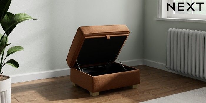 7.2.10 Heath Highback Storage Footstool Ripple Chenille Mid Rust Brown Small Block - Light | Made Click here to use our website with more accessibility support, for example screen readers