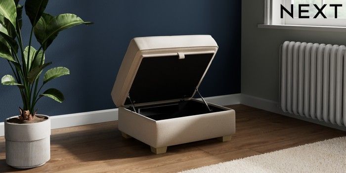 7.2.10 Heath Highback Storage Footstool Studio Chenille Oyster Small Block - Light | Made Click here to use our website with more accessibility support, for example screen readers