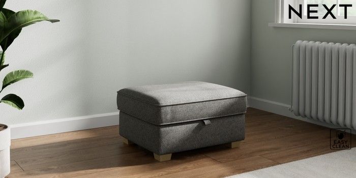 7.2.10 Heath Highback Storage Footstool Tweedy Blend Easy Clean Dark Grey Small Block - Light | Made Click here to use our website with more accessibility support, for example screen readers