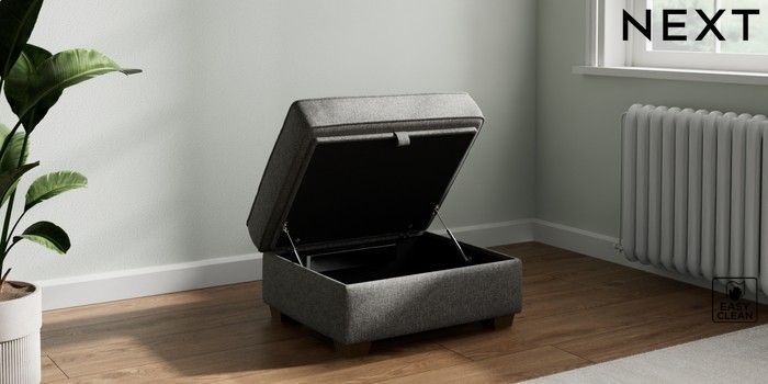 7.2.10 Heath Highback Storage Footstool Tweedy Blend Easy Clean Dark Grey Small Block - Mid | Made Click here to use our website with more accessibility support, for example screen readers