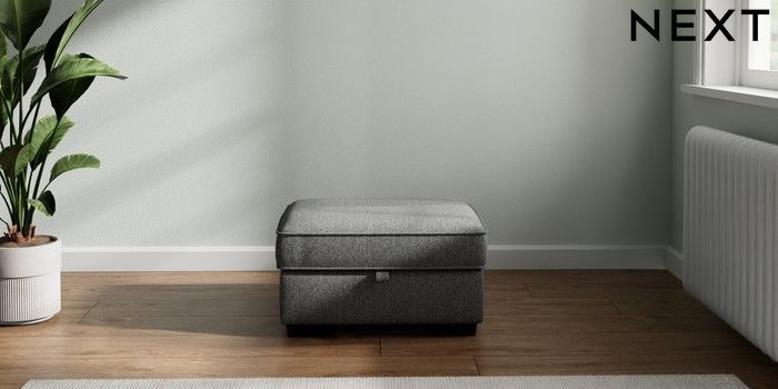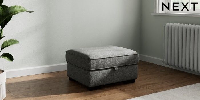 7.2.10 Heath Highback Storage Footstool Tweedy Chenille Dark Grey Small Block - Dark | Made Click here to use our website with more accessibility support, for example screen readers