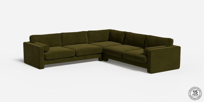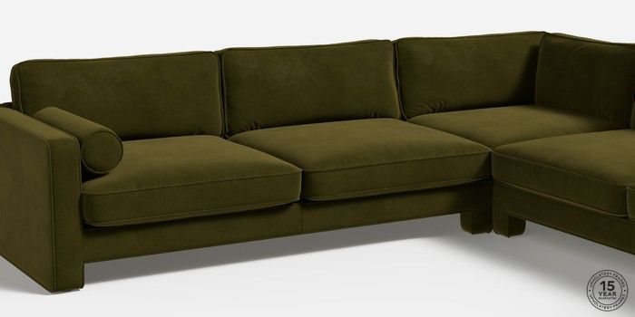 7.2.6 Holloway by Made Medium Corner Sofa - Universal Matt Velvet Easy Clean Deep Olive Green Glide | Made Click here to use our website with more accessibility support, for example screen readers