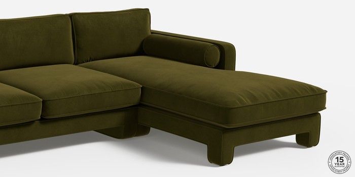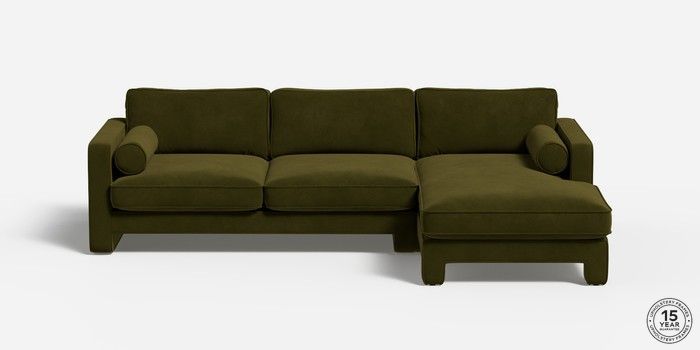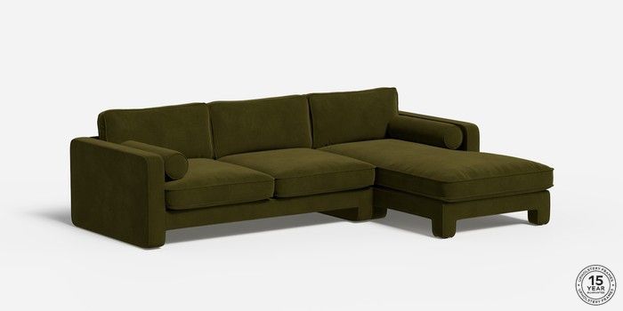 7.2.6 Holloway by Made Medium Sofa Chaise - Right Hand Matt Velvet Easy Clean Deep Olive Green Glide | Made Click here to use our website with more accessibility support, for example screen readers