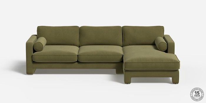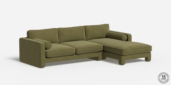 7.2.6 Holloway by Made Medium Sofa Chaise - Right Hand Matt Velvet Easy Clean Fern Green Glide | Made Click here to use our website with more accessibility support, for example screen readers
