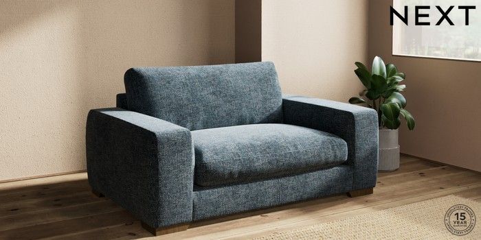 7.2.10 Houghton Deep Relaxed Sit 2 Seater Small Sofa Chunky Chenille Dark Navy Blue Large Square Angle - Mid | Made Click here to use our website with more accessibility support, for example screen readers