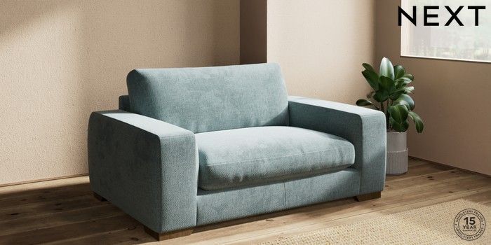 7.2.10 Houghton Deep Relaxed Sit 2 Seater Small Sofa Chunky Chenille Light Teal Green Large Square Angle - Mid | Made Click here to use our website with more accessibility support, for example screen readers