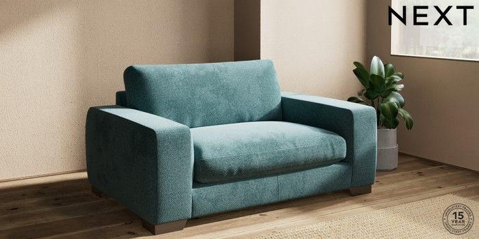 7.2.10 Houghton Deep Relaxed Sit 2 Seater Small Sofa Chunky Chenille Mid Teal Green Large Square Angle - Gunmetal | Made Click here to use our website with more accessibility support, for example screen readers