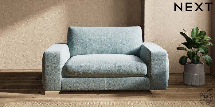 7.2.10 Houghton Deep Relaxed Sit 2 Seater Small Sofa Chunky Marl Mid Blue Large Square Angle - Chrome Metal | Made Click here to use our website with more accessibility support, for example screen readers