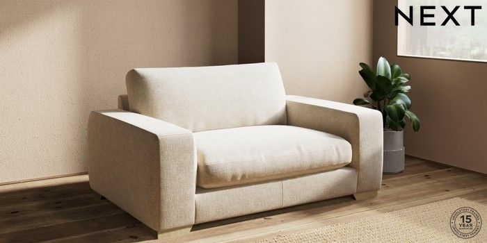 7.2.10 Houghton Deep Relaxed Sit 2 Seater Small Sofa Chunky Weave Cream Large Square Angle - Light | Made Click here to use our website with more accessibility support, for example screen readers