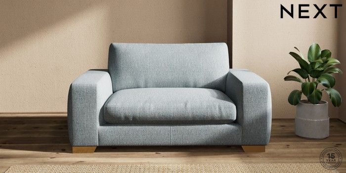 7.2.10 Houghton Deep Relaxed Sit 2 Seater Small Sofa Chunky Weave Mid Blue Large Square Angle - Brushed Brass | Made Click here to use our website with more accessibility support, for example screen readers
