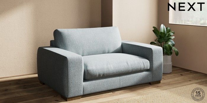 7.2.10 Houghton Deep Relaxed Sit 2 Seater Small Sofa Chunky Weave Mid Blue Large Square Angle - Mid | Made Click here to use our website with more accessibility support, for example screen readers