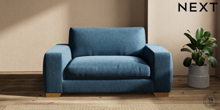 7.2.10 Houghton Deep Relaxed Sit 2 Seater Small Sofa Cotswold Chenille Dark Blue Large Square Angle - Brushed Brass | Made Click here to use our website with more accessibility support, for example screen readers