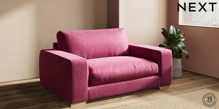 7.2.10 Houghton Deep Relaxed Sit 2 Seater Small Sofa Cotswold Chenille Dark Raspberry Pink Large Square Angle - Light | Made Click here to use our website with more accessibility support, for example screen readers