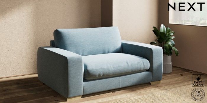7.2.10 Houghton Deep Relaxed Sit 2 Seater Small Sofa Fine Chenille Easy Clean Mid Blue Large Square Angle - Light | Made Click here to use our website with more accessibility support, for example screen readers