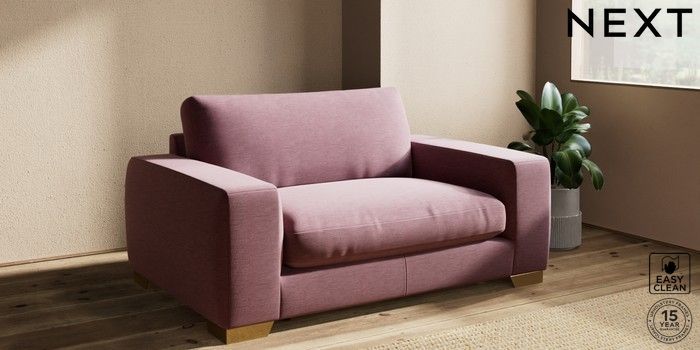 7.2.10 Houghton Deep Relaxed Sit 2 Seater Small Sofa Fine Chenille Easy Clean Mid Mulberry Purple Large Square Angle - Brushed Brass | Made Click here to use our website with more accessibility support, for example screen readers