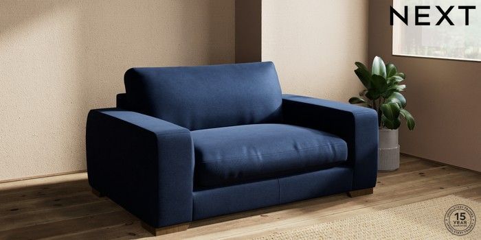 7.2.10 Houghton Deep Relaxed Sit 2 Seater Small Sofa Luxe Chenille Navy Blue Large Square Angle - Mid | Made Click here to use our website with more accessibility support, for example screen readers