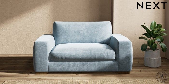 7.2.10 Houghton Deep Relaxed Sit 2 Seater Small Sofa Plush Chenille Light Blue Large Square Angle - Mid | Made Click here to use our website with more accessibility support, for example screen readers