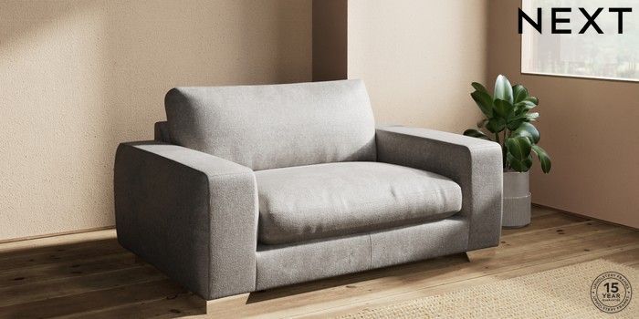 7.2.10 Houghton Deep Relaxed Sit 2 Seater Small Sofa Plush Chenille Light Grey Large Square Angle - Chrome Metal | Made Click here to use our website with more accessibility support, for example screen readers
