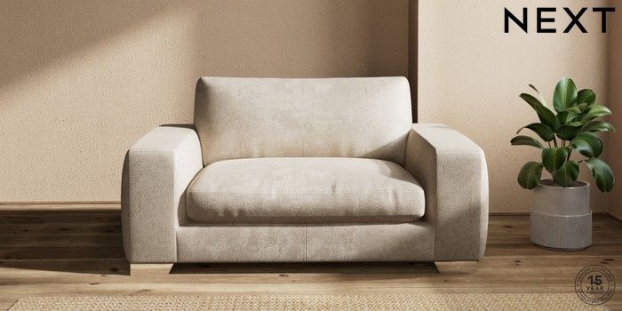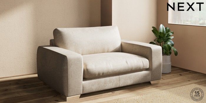 7.2.10 Houghton Deep Relaxed Sit 2 Seater Small Sofa Plush Chenille Light Natural Large Square Angle - Chrome Metal | Made Click here to use our website with more accessibility support, for example screen readers
