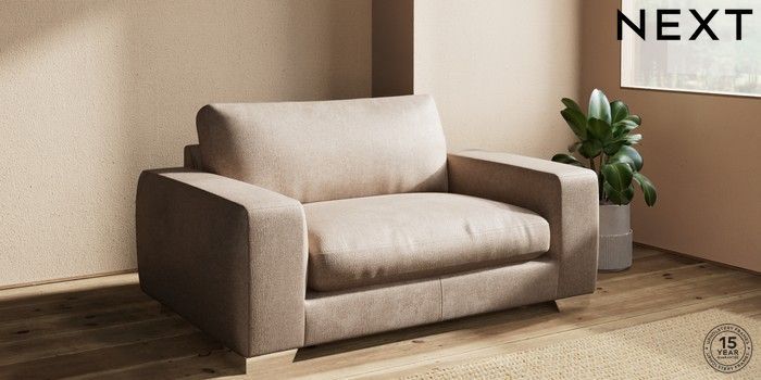 7.2.10 Houghton Deep Relaxed Sit 2 Seater Small Sofa Plush Chenille Mid Natural Large Square Angle - Chrome Metal | Made Click here to use our website with more accessibility support, for example screen readers