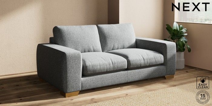 7.2.10 Houghton Deep Relaxed Sit 3 Seater Small Sofa Chunky Boucle Easy Clean Mid Grey Large Square Angle - Brushed Brass | Made Click here to use our website with more accessibility support, for example screen readers