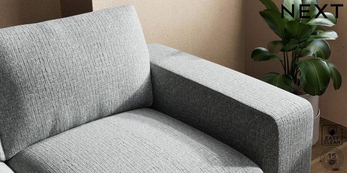 7.2.10 Houghton Deep Relaxed Sit 3 Seater Small Sofa Chunky Boucle Easy Clean Mid Grey Large Square Angle - Chrome Metal | Made Click here to use our website with more accessibility support, for example screen readers